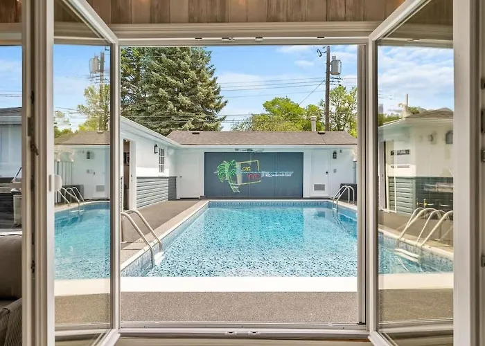 Die Villa The Experience - Pool Hot Tub Theater Games Rm Pub YYC bietet einen privaten Swimmingpool zur Entspannung der Gäste und liegt im Viertel Northeast Calgary.